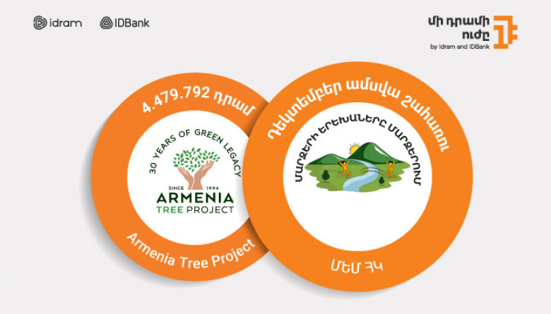 Իդրամից և IDBankից տեղեկացնում են, որ դեկտեմբեր ամսվա ընթացքում կուտակված ողջ գումարը փոխանցվելու է «Մարզերի երեխաները մարզերում» հիմնադրամի «ԴեմԱռԴեմ․ Սերունդների երկխոսություն» ամենամյա մարզային ֆորումին, որի նպատակն է ներկայանալու հարթակ տրամադրել բոլոր այն երեխաներին, որոնք յուրահատուկ փորձառություն ու ասելիք ունեն և իրենց գործունեության ոլորտներում արդեն իսկ հասցրել են հաջողություններ գրանցել։