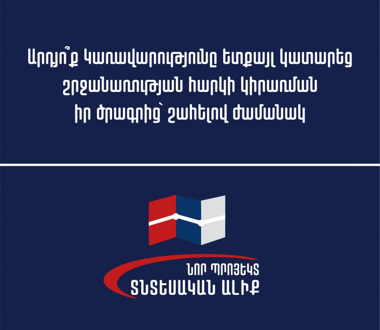 Այսօր Կառավարությունը հաստատեց շրջանառության հարկ վճարող տնտեսվարողների աջակցության ծրագիրը՝ ըստ էության 6 ամսով հետաձգում, ինչը ևս մեկ անգամ ցույց է տալիս, որ հարկային օրենսգրքի այս փոփոխությունը պատճաշ կազմակերպված չէր, որն էլ առաջացրել է լուրջ դժգոհություն ՓՄՁ ներկայացուցիչների և այլ շրջանակներում։
