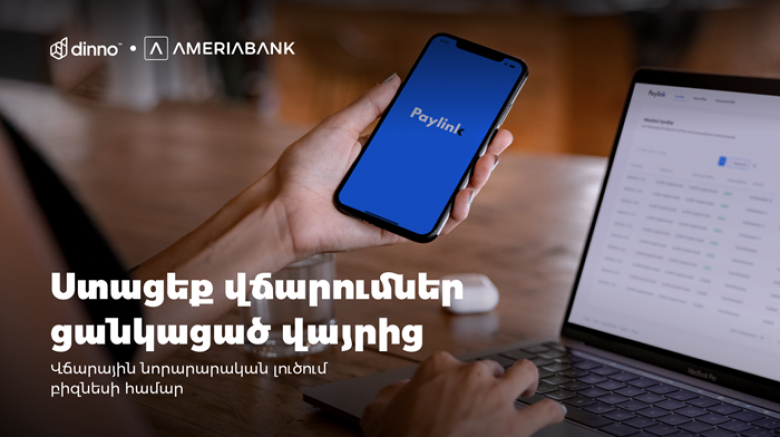 Վճարումներ ստանալու նոր, արագ ու անվտանգ եղանակ՝ ընդամենը մեկ հղումով. Ամերիաբանկը և Դիննո ընկերությունը ներկայացնում են PayLink համատեղ հարթակը, որը վճարումների ստացման և կառավարման նորարարական լուծում է։ Այն օգնում է բիզնեսին պարզեցնել գործընթացները, ստանալ անխափան ու անվտանգ վճարումներ, ինչպես նաև ակնթարթային հաշվետվություն: