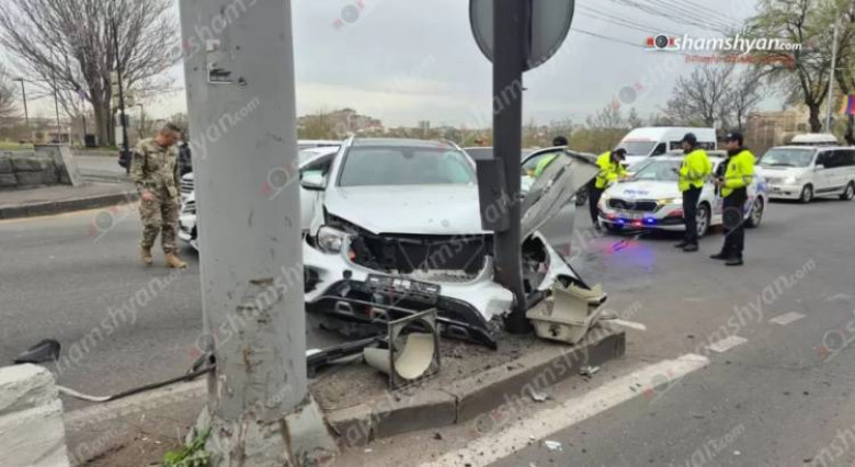 Վթար Երևանում, բախվել են «Nissan» ու «Mercedes», որն էլ հետո՝ լուսակիրի սյանը. Shamshyan