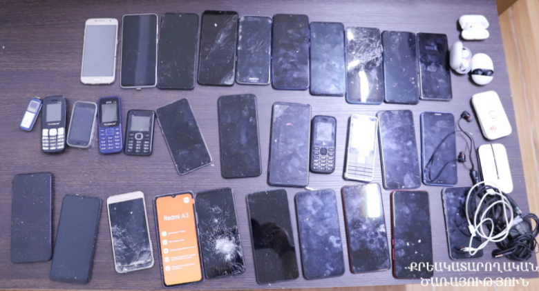 Զննության արդյունքում սառնարանում նախապես պատրաստված թաքստոցից ծառայողները հայտնաբերել են 32 բջջային հեռախոս, 2 wi-fi սարք, 5 զույգ ականջակալ և 3 USB լար։