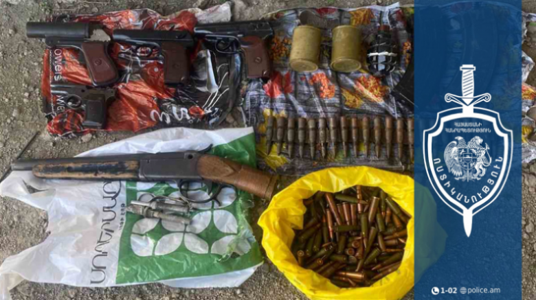Մեկնած ոստիկանները ռեստորանի հետնամասում գտնվող կիսաքանդ շինությունում հայտնաբերել են տարբեր տեսակի, այդ թվում՝ «Մակարով» ատրճանակներ, հրացան, երեք նռնակ, նռնակի երկու պայթուցիչ, ինքնաձիգի պահեստատուփ, 195 փամփուշտ և գնդացրի փամփուշտների շղթա։