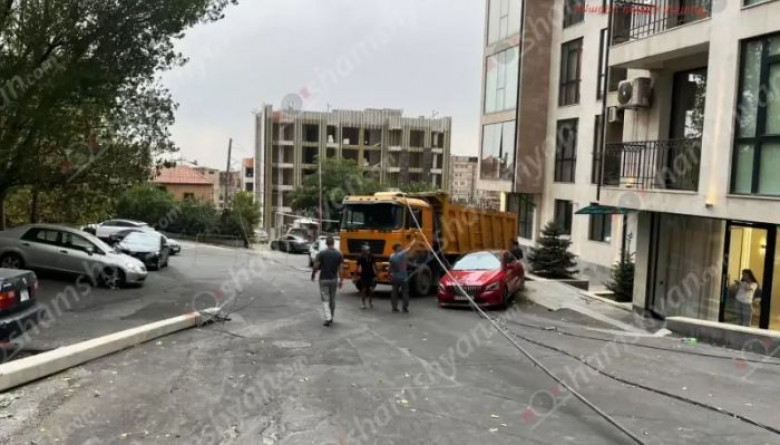 Խոշոր վթար՝ Երևանում, բեռնատարը բախվել է սյան, ապա «Mercedes»-ի և «Volkswagen»-ի, վնասվել են նաև «Range Rover» և «Volkswagen»․ Shamshyan