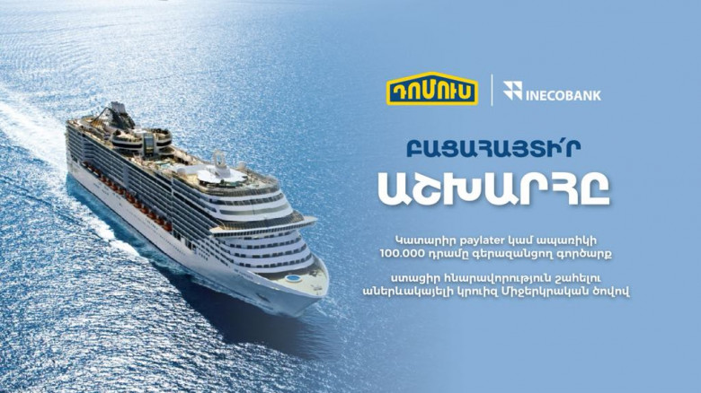 Անմոռանալի ճամփորդություն Միջերկրական ծովով, լիարժեք հանգիստ այն էլ նվերի տեսքով։ Այո՛, ձեր այս երազանքը կարող է իրականություն դառնալ Դոմուսի և Ինեկոբանկի օգնությամբ։ Խաղարկության մասնակիցները հնարավորություն ունեն շահելու Միջերկրական ծովով կրուիզ 1 անձի համար։