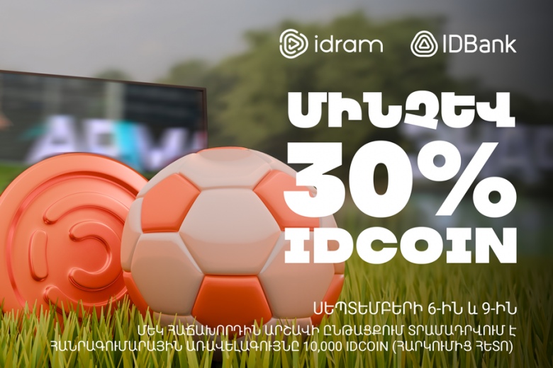 Այսպիսով, Հայաստան-Պորտուգալիա ֆուտբոլային հանդիպման օրը՝ 2025թ․ սեպտեմբերի 6-ից մինչև սեպտեմբերի 7-ը ժամը 03։00-ն, ինչպես նաև Հայաստան – Իռլանդիա խաղի օրը՝ սեպտեմբերի 9-ից մինչև սեպտեմբերի 10-ը ժամը 03։00-ն, վճարելով Idram&IDBank հավելվածով ներքևում նշված վաճառակետերում՝ հաճախորդները կստանան մինչև 30% ակնթարթային idcoin (ներառյալ հարկերը)․