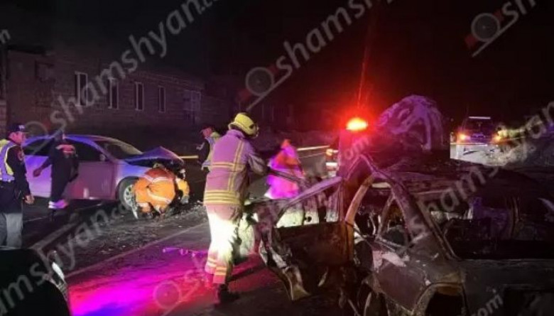 Ողբերգական վթար-հրդեհ Վաղարաշապատ-Աշտարակ ճանապարհին, բախվել են «Toyota» և «Opel», 1 մարդ մաhացել է, 3-ը՝ վիրավnրվել. Shamshyan