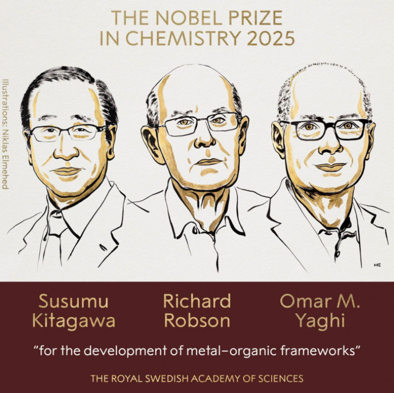 Շվեդիայի գիտությունների թագավորական ակադեմիան քիմիայի բնագավառում 2025 թվականի Նոբելյան մրցանակը շնորհել է Շուշումու Կիտագավային (Ճապոնիա), Ռիչարդ Ռոբսոնին (Ավստրալիա) և Օմար Յաղիին (ԱՄՆ)՝ «մետաղաօրգանական կաղապարների մշակման համար»: «Արմենպրես»-ի փոխանցմամբ՝ այս մասին հաղորդագրություն է տարածել Նոբելյան հանձնաժողովը։