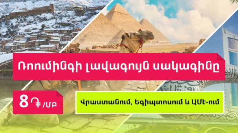 All those subscribers who prefer sharing photos, videos and impressions right in the course of their trip, can also activate "Internet in Roaming" high-speed internet bundles, in particular, a 2 GB one for 10 500 drams or a 3 GB bundle for 13 500 drams. To activate the preferred bundle, one needs to dial *121# and follow the instructions.