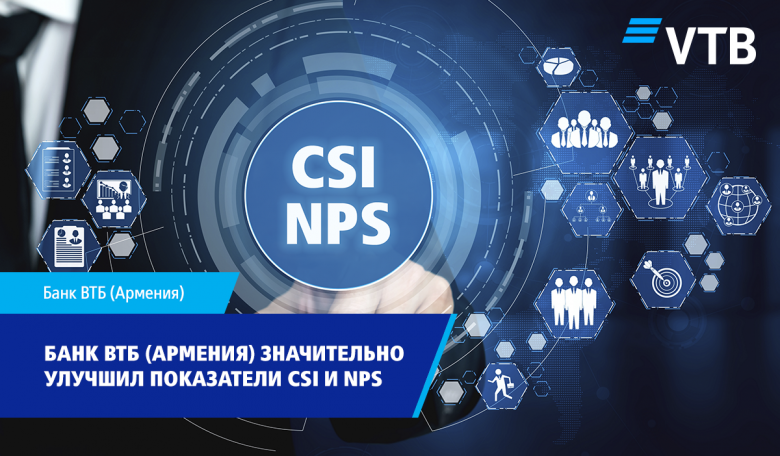 Банк ВТБ (Армения) за последний год значительно улучшил показатели NPS и CSI, превысив международный целевой показатель. В первом квартале 2021 года индекс удовлетворенности клиентов составил 9,6 (международный целевой показатель - 9), а показатель лояльности клиентов - 74% (международный целевой показатель - 70%).
