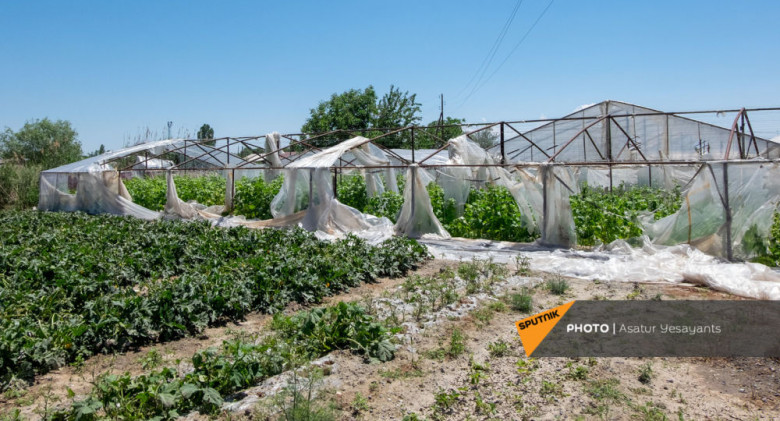 Как рассказала местная жительница Лусине Паронян, град не так уж сильно повредил ее теплицы, однако дыня, семена которой были посажены на площади 1000 кв.м, полностью испорчена. По ее словам, семья потратила свыше 100 тысяч драмов (около 200 долларов) на семена, кроме того, немало денег ушло на электричество. О своих потраченных впустую усилиях Лусине уже и не стала говорить.