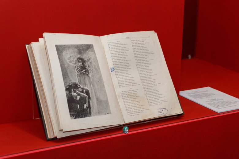 Впервые была также представлена книга “Сборник сочинений”, изданная к 50-ой годовщине со дня смерти М. Лермонтова, иллюстрации к которой сделали Врубель, Айвазовский, Суриков, Шишкин, Репин, братья-Васнецовы, Поленов и др.
