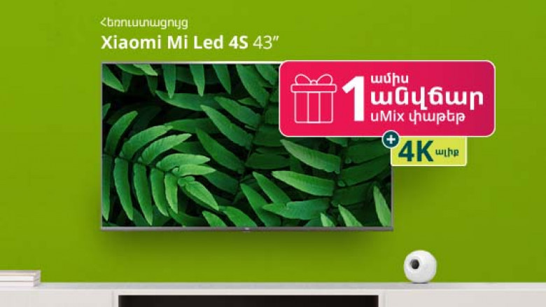 Отныне в онлайн-магазине Ucom новые абоненты смогут приобрести один из телевизоров Xiaomi Mi Led 4s или Xiaomi Mi Tv P1 и получить возможность бесплатно воспользоваться пакетом uMix и смотреть телеканал формата 4K в течение 1 месяца. А действущие абоненты Ucom TV получат скидку в 10%, а также возможность бесплатно наслаждаться просмотром телеканала «Love Nature» в формате 4K в течение одного месяца.