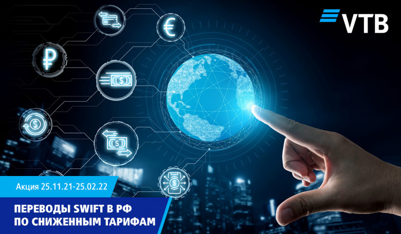 С 25.11.2021г. Банк запускает акцию сроком на 3 месяца, в рамках которой физические лица могут отправлять денежные переводы по системе SWIFT в рублях РФ, долларах США и Евро на банковские счета в Россию по выгодным условиям.
