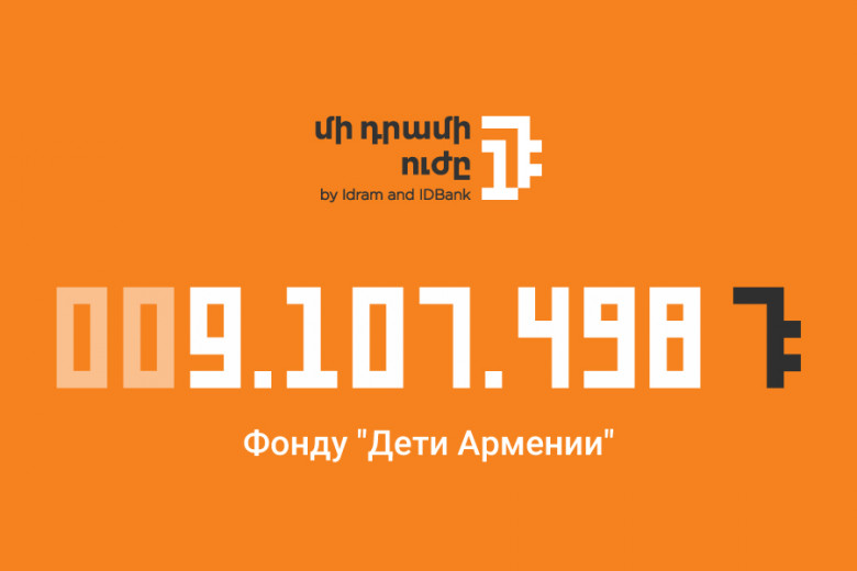 IDBank и Idram подвели итоги очередной программы инициативы «Сила одного драма»: вся сумма «одних драмов», собранная за май и июнь этого года, 9 107 498 драмов, была перечислена в фонд «Дети Армении».