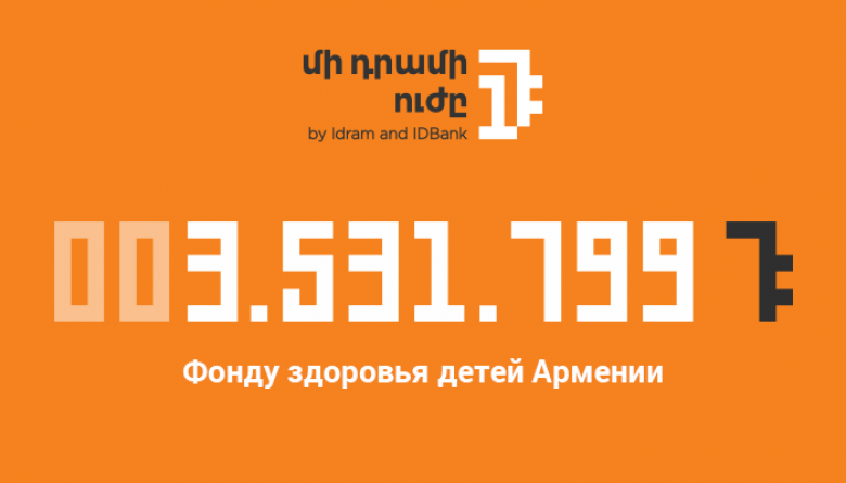 IDBank и Idram подвели итоги декабрьской программы «Сила одного драма». Таким образом, собранная в декабре сумма составила 3,531,799 драмов, которая была переведена в Фонд здоровья детей Армении, тем самым оказав поддержку детям с проблемами со здоровьем.