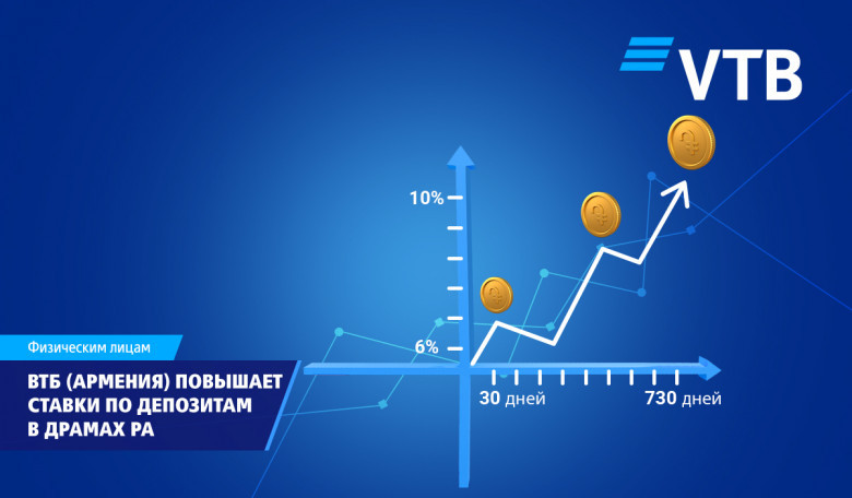 ВТБ (Армения) повышает ставки по депозитам в драмах РА