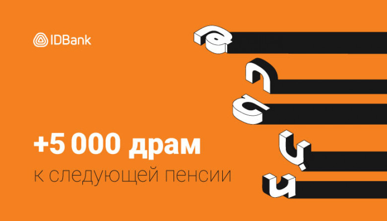По этому случаю IDBank объявляет о запуске эксклюзивной акции. В рамках акции, с 25.03.2024 по 31.05.2024, клиенты, заказавшие пенсионную карту в филиале банка и получившие ее до 10.06.2024, включая пенсию или периодическое пособие, получат 5 000 драм в знак «Добро пожаловать» от Банка.