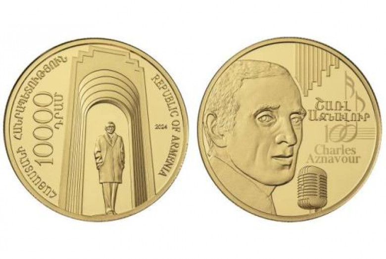 20 мая 2024 года Центральный банк Республики Армения вводит в обращение золотую памятную монету “100-летие со дня рождения Шарля Азнавура