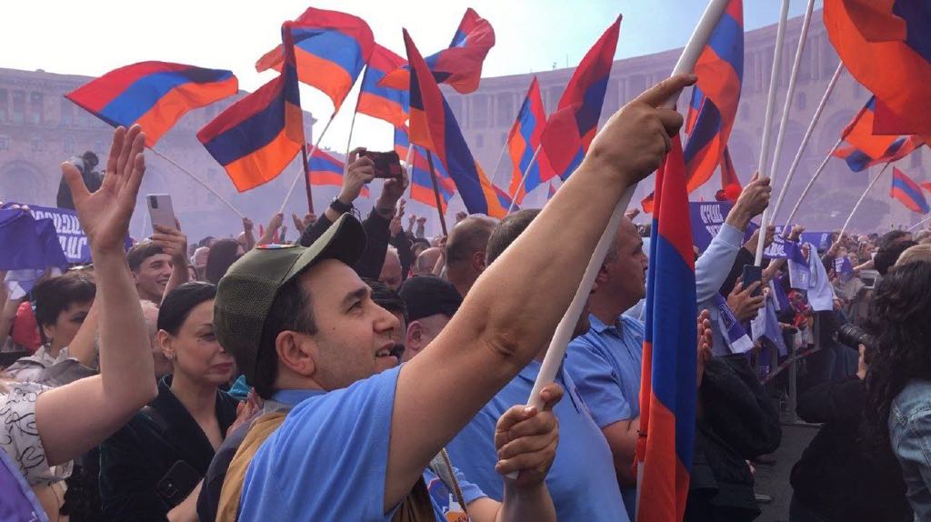 Члены и сторонники движения «Всеармянский фронт» на митинге протеста 26 мая: фото