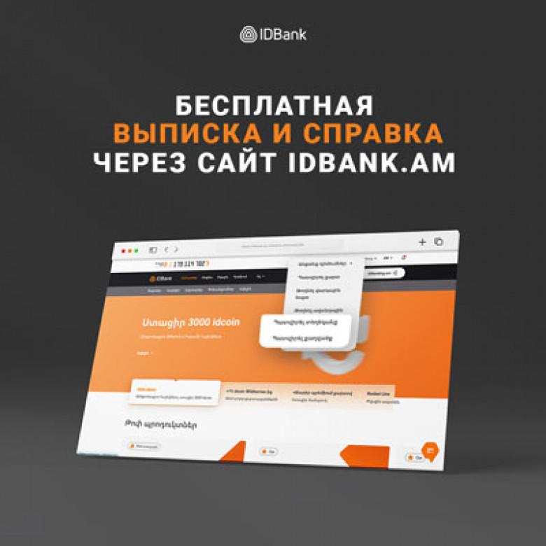 Если Вы не хотите еще больше уставать перед поездкой на отдых, то это предложение Вас порадует. Таким образом, больше нет необходимости идти в Банк за выписками и справками из IDBank-а. Все необходимые выписки или справки можно заказать на сайте idbank.am.