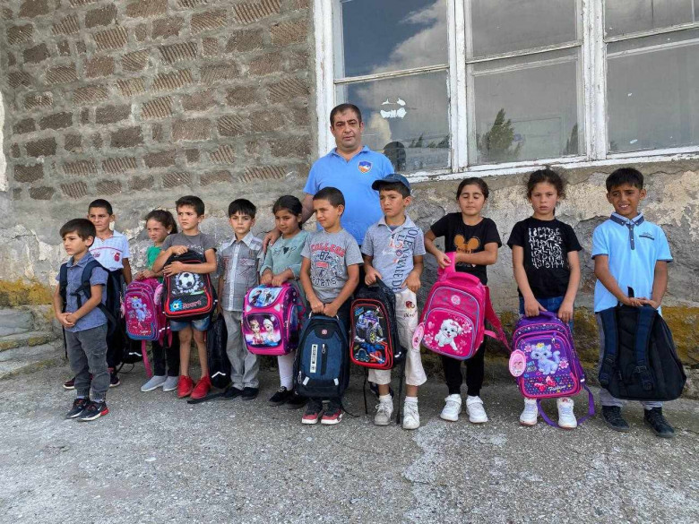 Представители партии «Всеармянский фронт» посетили общину Варденис, чтобы в преддверии нового учебного года раздать школьникам сумки, канцелярские принадлежности