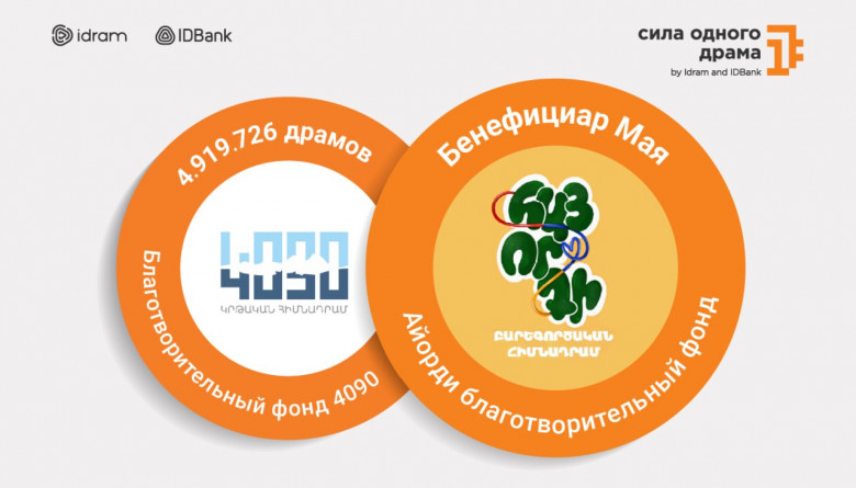 Инициатива «Сила одного драма» подвела итоги апреля: собранная сумма в размере 4 919 726 драмов была направлена в благотворительный фонд «4090», занимающийся социальными и образовательными программами для граждан, прошедших через войны.