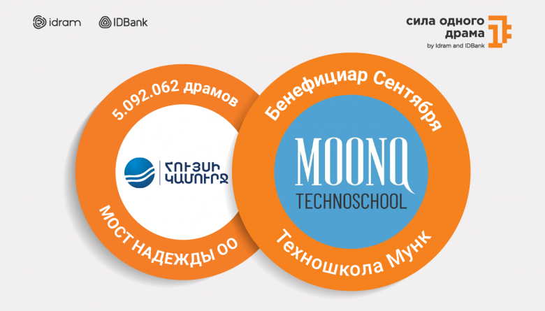 А бенефициаром сентября стала техношкола «Мунк», основанная в Арцахе и продолжающая свою деятельность в Армении. Школа предоставляет детям из разных регионов возможности для получения технологического образования. Имя бенефициара в этот раз было объявлено в беспрецедентно торжественной обстановке — во время мероприятия «Силе одного драма – 5 лет».
